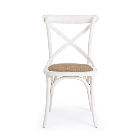 CROSS ist ein klassischer Stuhl aus Ulmenholz. Seine gepolsterte Sitzfläche ist aus natürlichem Rattan gefertigt.