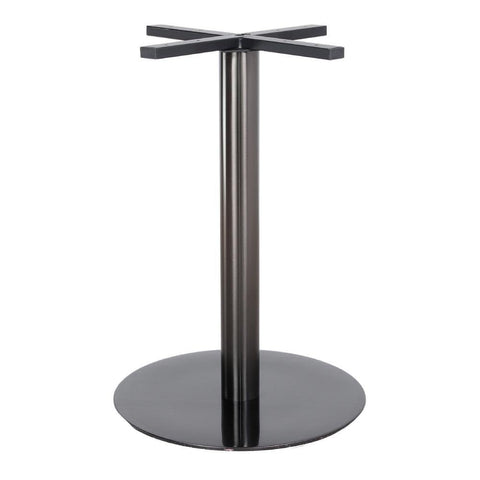 Das KERGELEN Tischgestell überzeugt durch seine klare Formensprache und robuste Verarbeitung. Gefertigt aus massivem Stahl und im Metallbad tiefschwarz lackiert, bietet es eine stabile und zugleich elegante Basis für runde oder quadratische Tischplatten – ideal für den Einsatz im Innenbereich.