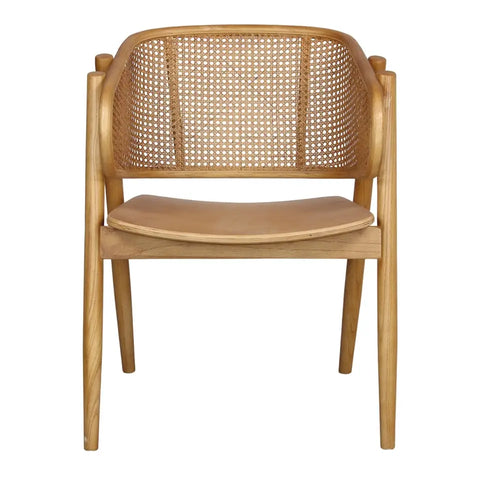 YUMAK ist ein Holzstuhl mit einer Struktur aus Ulmenholz und einer Rückenlehne aus Geflecht.