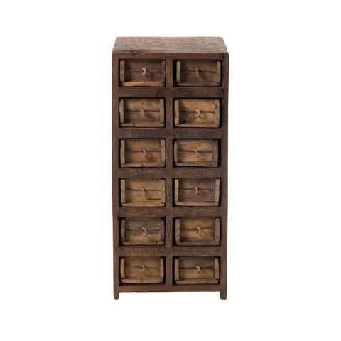 PREDAL ist eine Kommode aus recyceltem Holz mit insgesamt 12 Schubladen, die auf zwei Säulen verteilt sind. Mit seinen Schnurgriffen, den Eisenriemen und natürlich dem rohen Holz bringt PREDAL einen Hauch von Möbeltradition in Ihre Einrichtung.