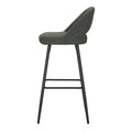 Der Bangasy ist ein Barhocker mit einer sanft nach hinten geneigten Rückenlehne, deren abgerundete Form dem Rücken eine angenehme Stütze bietet. Sitz und Rücken sind durchgehend gepolstert und sorgen für ein weiches, ausgeglichenes Sitzgefühl. Die Form der Lehne wirkt einladend, ohne den Sitzbereich optisch zu schließen, und unterstützt eine entspannte Haltung.