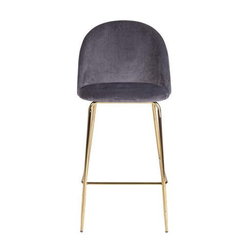 CARRY ist ein Barhocker mit Samtpolsterung und einem goldfarbenen, galvanisierten Metallgestell.