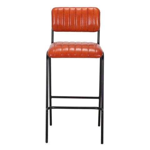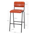 RIGA -  Barstuhl im Industrie-Stil mit pulverbeschichtetem Stahlrohrgestell, Sitz und Rückenlehne mit Leder gepolstert