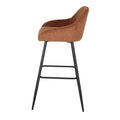 Der RODALY Barhocker verfügt über ein filigranes Gestell aus pulverbeschichtetem Stahl und eine weich gepolsterte Sitzfläche mit Rückenlehne. Die Kombination aus stabilem Metallrahmen und hochwertigem Textilbezug verleiht ihm ein modernes, ausgewogenes Erscheinungsbild, das sich mühelos in unterschiedliche Raumkonzepte integrieren lässt.