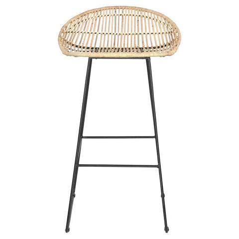 Hoher Hocker im nordischen Stil mit Stahlrohrstruktur, schwarz pulverbeschichtet und Sitz aus natürlichem Rattan.