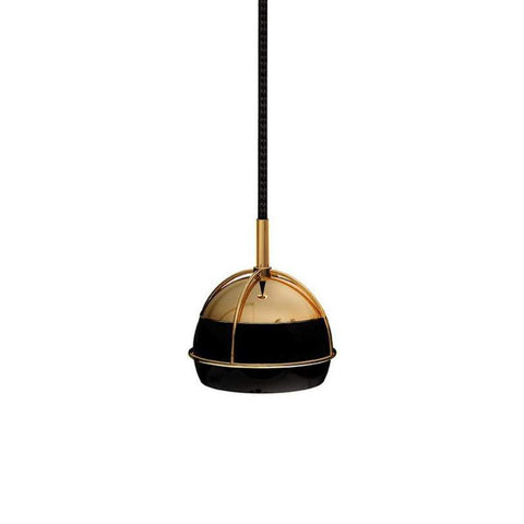 Inspiriert vom herzlosen Raubtier wurde die Black-Widow-Pendant geschaffen mit ihrer organischen vergoldeten Messingstruktur und der geometrischen Verbindung zum lackierten Glasschirm.
