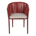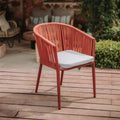 Sein Stahlrohrgestell ist ebenfalls farbig. Sitz und Rückenlehne von AGOSTA sind aus Polyesterseilen gefertigt.