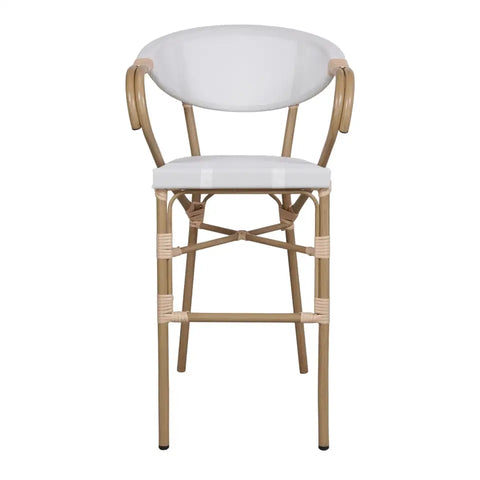NIDRAZA ist ein Barstuhl im Bistrostil mit einem Aluminiumrohrgestell in Bambusoptik.