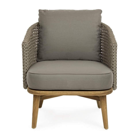 NINFA ist ein Gartensessel, der einen UV-Schutz hat und wasserdicht ist. Er hat ein Seilgeflecht (100% Polypropylen) und abnehmbare Kissen.