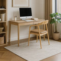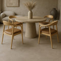 Die Rückenlehne ist sanft gerundet und leicht nach hinten geneigt, wodurch sie den Körper angenehm stützt. Die geschwungenen Armlehnen gehen harmonisch in die Struktur über und verleihen dem Stuhl ein ausgewogenes, durchdachtes Erscheinungsbild.