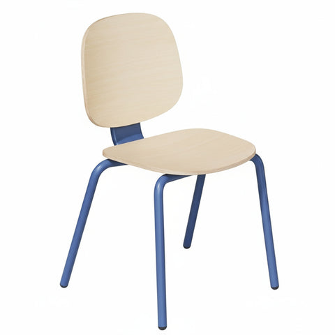 COLMAR – Stapelstuhl mit blauem Metallgestell und Sitzfläche aus HPL-beschichtetem Sperrholz in Naturfarbe