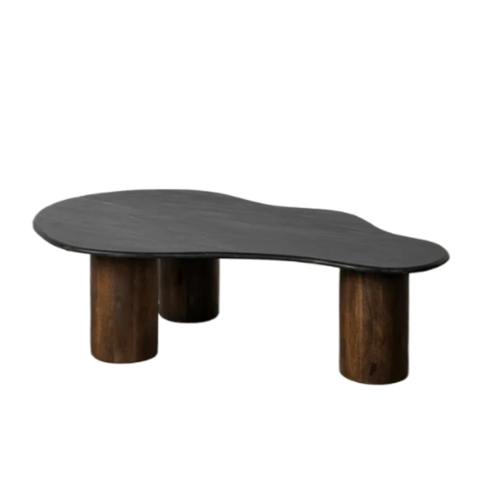 GAGA – Couchtisch mit schwarzer und brauner Marmorplatte und Mangoholzgestell