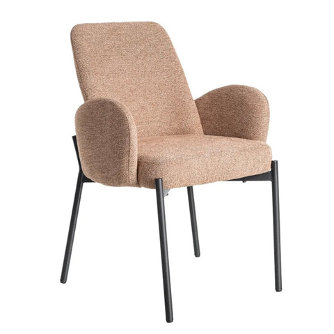 Der Linga ist ein moderner Stuhl mit weicher, fließender Form, der Komfort und dezente Eleganz vereint. Seine leicht gebogene, nach hinten geneigte Rückenlehne geht harmonisch in die Sitzfläche über und sorgt für eine stabile, ergonomische Haltung. Der Stoffbezug in einem zarten Rosé-Beigeton verleiht dem Stuhl eine warme und freundliche Ausstrahlung, die sich gut mit natürlichen oder modernen Materialien kombinieren lässt.