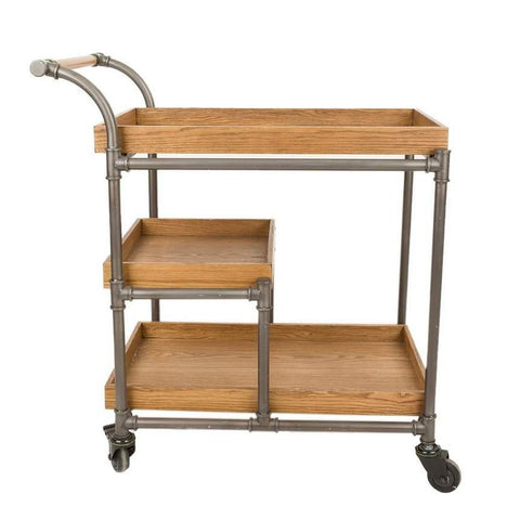Ein äußerst widerstandsfähiger, schwarz lackierter Eisenrahmen, kombiniert mit Holzeinlegeböden und einem bequemen Ledergriff. Das Ergebnis ist ein vielseitiges Produkt, das auch ein modernes Industriedesign gewährt.