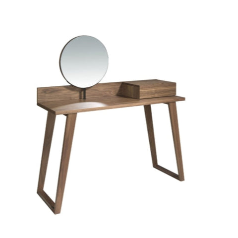 KUAF Schminktisch aus Walnussfurnier mit Schublade und drehbarem Spiegel.