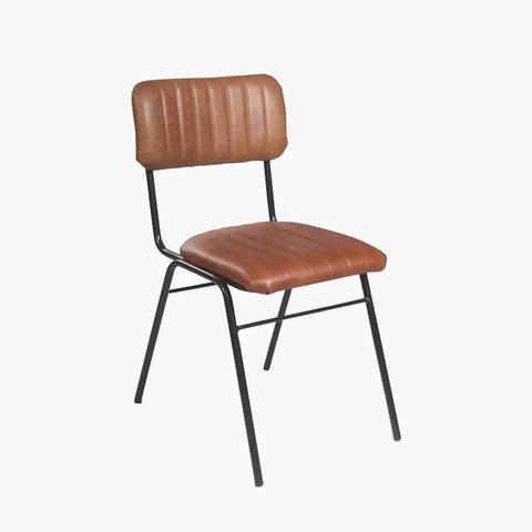 Der ALMAZ Lederstuhl vereint das Beste aus zwei Welten: Die Sitzfläche und Rückenlehne sind aus hochwertigem Büffelleder gefertigt und mit einer vertikalen Rippung versehen, während das Gestell aus robustem, schwarzem Eisen besteht. Diese Kombination sorgt für eine langlebige und stilvolle Sitzgelegenheit, die sich in jede Einrichtung einfügt.