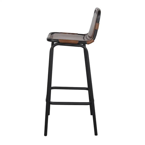IGOR ist ein Barstuhl im industriellen Stil mit Stahlrohrgestell und Ledersitz.