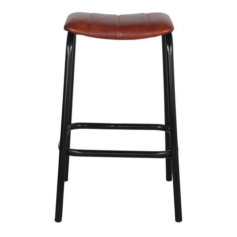 OXLEY ist ein Lederhocker im Industriestil mit einem schwarz lackierten Stahlrohrgestell.