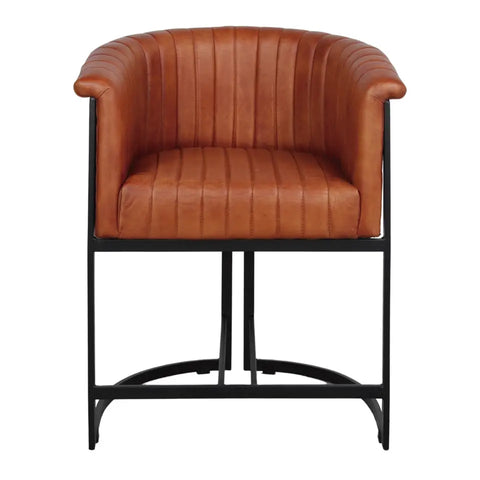STRIKE ist ein Lederstuhl im industriellen Vintage-Stil mit Stahlrohrgestell.