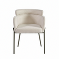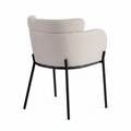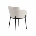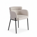 Das Gestell aus schwarzem Metall bildet einen stabilen Rahmen, der durch seine schlichte Linienführung die geschwungene Form der Sitzschale betont. Diese Verbindung von weichem Textil und festem Metall schafft ein harmonisches Gleichgewicht zwischen Komfort und moderner Ästhetik.