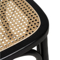 HAKA - Holzstuhl, gefertigt aus hochwertigem Ulmenholz und mit einer feinen Rattangeflecht-Rückenlehne.