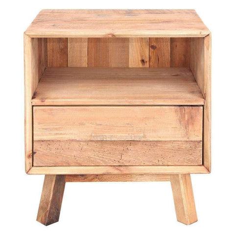 Rustikaler Nachttisch aus massivem, recyceltem Kiefernholz mit 1 Schublade.