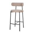 Sitz und Rücken sind weich gepolstert und mit Textil bezogen, was den Hocker komfortabel macht und ihm eine einladende Note verleiht. Die Formgebung unterstützt langes, entspanntes Sitzen und fügt sich zugleich harmonisch in moderne Raumkonzepte ein.