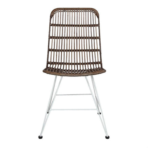 ACRACIA Stuhl im nordischen Stil mit weiß lackiertem Metallgestell und Sitz aus natürlichem Rattan.