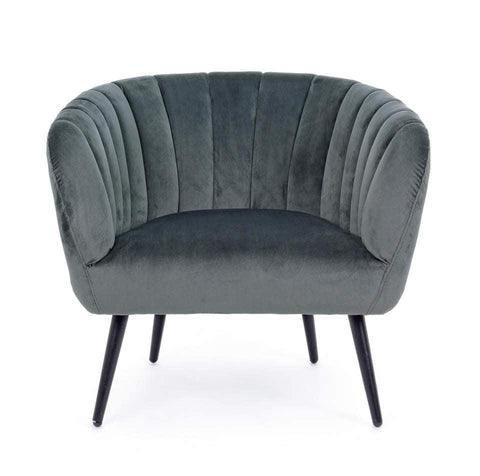 AVRIL ist ein Sessel mit einem Polyesterbezug in Samtoptik. Die innere Struktur von AVRIL besteht aus Sperrholz und die Beine sind aus pulverbeschichtetem Stahl gefertigt.