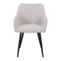 Die schwarze Lackierung unterstreicht seine schlichte, moderne Ausstrahlung und lässt sich problemlos mit verschiedenen Materialien und Farbwelten kombinieren – von natürlichen Holztönen bis hin zu mutigen, kontrastreichen Interieurs. Sitz und Rückenlehne sind gepolstert und mit Stoff bezogen, was für angenehmen Komfort und eine ergonomische Sitzhaltung sorgt, selbst bei längerer Nutzung.