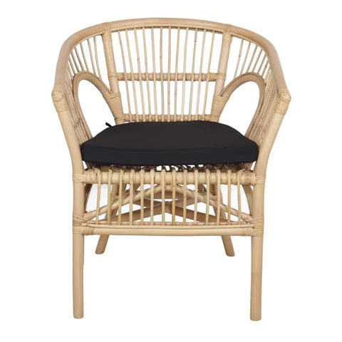 KELEK ist ein großzügiger Rattanstuhl mit Armlehnen.