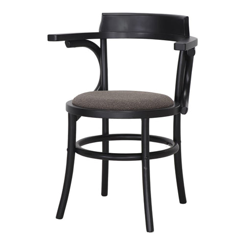 Der Kotan ist ein Holzstuhl im klassischen Bistrostil, der traditionelle Formen mit einem modernen Ausdruck verbindet. Sein Gestell besteht aus massivem Birkenholz, das für seine Festigkeit und Beständigkeit geschätzt wird. Die schwarze Lackierung unterstreicht die klare Linienführung des Designs und verleiht dem Stuhl eine elegante, zeitlose Ausstrahlung.