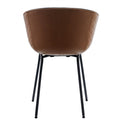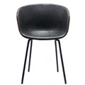 Die Polsterung aus zweifarbigem Kunstleder zeigt innen Schwarz und außen Braun, was dem Stuhl eine edle und zugleich markante Ausstrahlung verleiht. Die schwarzen Metallbeine sorgen für Stabilität und runden das klare Design ab. Das Material ist pflegeleicht und widerstandsfähig, wodurch MISSO auch im intensiven Alltag der Gastronomie überzeugt.
