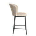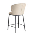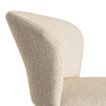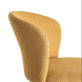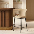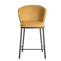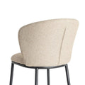 Der Muru präsentiert sich mit einer fein gepolsterten Sitzfläche und einer Rückenlehne, die nach oben geöffnet ist und dabei sanft seinen Körper umfasst. Die geschwungene Rückenform erzeugt eine elegante Umschließung, die Sitzkomfort und visuelle Leichtigkeit kombiniert. Sitz und Lehne sind harmonisch mit demselben Stoff bezogen, wodurch der Hocker eine ruhige Erscheinung erhält.