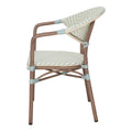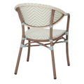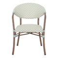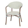 Der Sitz und die Rückenlehne aus geflochtener synthetischer Rattan unterstreichen den mediterranen Charakter des Modells und bieten einen komfortablen, flexiblen Halt. Das wetterfeste Flechtwerk erinnert an klassische Terrassenstühle und vereint traditionelle Optik mit moderner Materialtechnik.