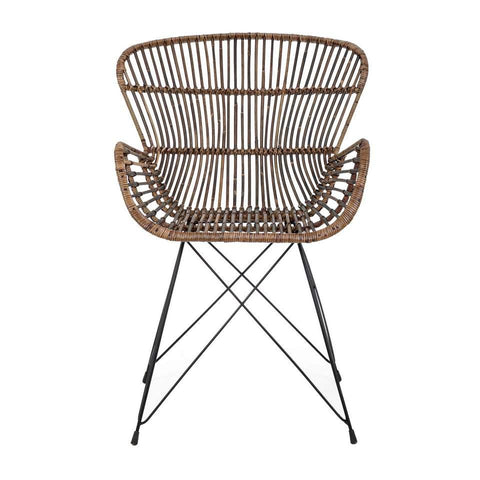 VENTURS ist ein Sessel mit pulverbeschichtetem Stahlrahmen und einem Geflecht aus natürlichem Rattan.