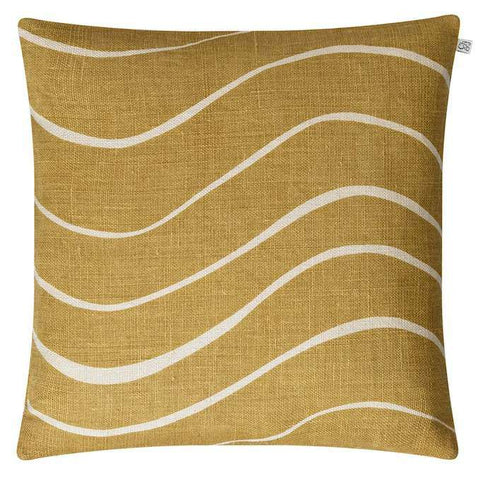 Der Kissenbezug Gaya hat ein Wellenmuster auf Leinen. Das Druckverfahren wird als Siebdruck bezeichnet, bei dem die Farbe mit Hilfe einer Schablone auf den Leinenstoff gedruckt wird, der dann in der Sonne trocknen gelassen wird. Das Druckverfahren basiert auf traditionellen indischen Handwerksmethoden.