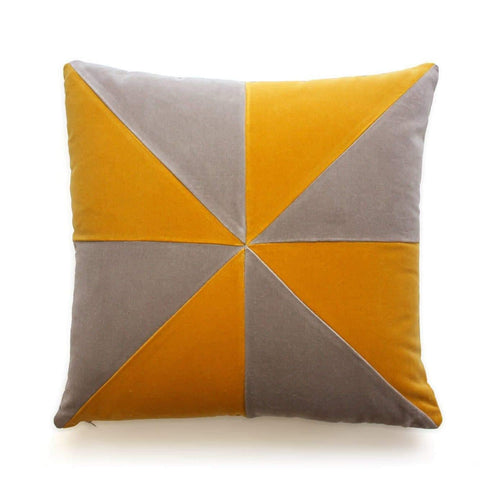 Das SAFIRA Senf & Taupe Samtkissen wird in Portugal aus hochwertigem Baumwollsamt handgefertigt.