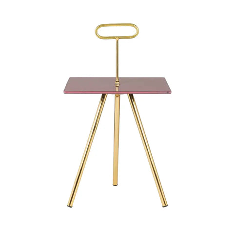 Der dreibeinige Beistelltisch hat einen Messinggriff oberhalb der Tischplatte.