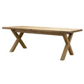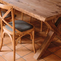 TRESTEL ist ein Tisch im Vintage-Stil aus massivem recyceltem Kiefernholz mit gekreuzten Beinen.