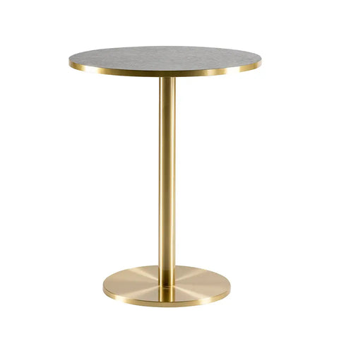 DANA ist ein messingfarbenes, galvanisiertes Tischgestell mit einer runden Bodenplatte und einer runden Säule.