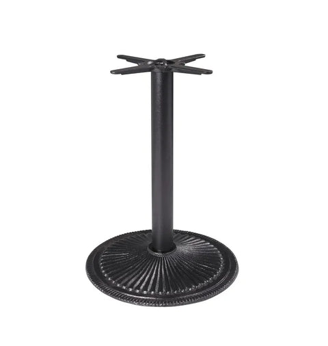 Seine dekorativ gerillte Basis sorgt für einen stilvollen Auftritt, der sich sowohl in Restaurants, Cafés als auch in privaten Wohnräumen harmonisch einfügt. Das Gestell ist in zwei Höhenvarianten erhältlich – als Standardhöhe für Esstische oder in Barhöhe für Stehtische.