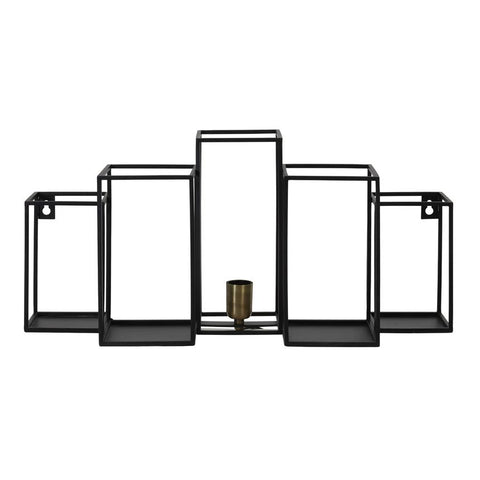 BALLY ist eine tolle Wandleuchte und Regalkombination mit 5 Fächern, von denen das Zentrum die Lampe beherbergt, die jeweils zwei an den Seiten Ihre Deko-Objekte aufnehmen. BALLY ist aus Metall gefertigt und hat die Farbe schwarz.
