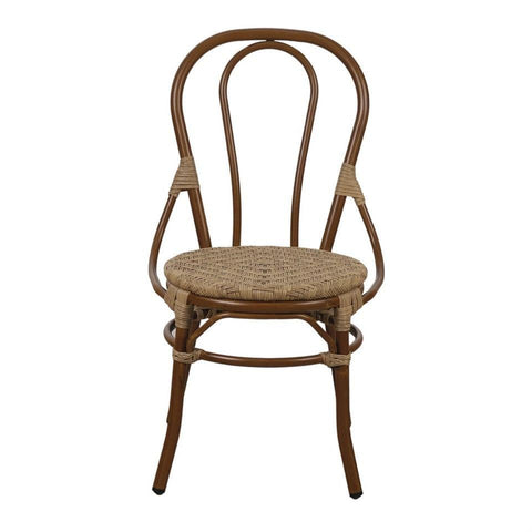 ALUTON ist ein synthetischer Rattanstuhl im Bistrostil. Die Struktur aus Aluminiumrohr ist mit einer Bambusimitation versehen.