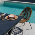 Der Fale ist ein moderner Stuhl, dessen Sitz und Rückenlehne eine durchgehende, schalenartige Form bilden. Diese geschlossene Sitzschale aus widerstandsfähigem synthetischem Seilgeflecht verleiht dem Stuhl eine angenehme Textur und sorgt zugleich für guten Halt und Komfort. Die gleichmäßige Flechtstruktur betont die organische Linienführung und macht den Fale zu einem vielseitigen Möbelstück für verschiedene Umgebungen.
