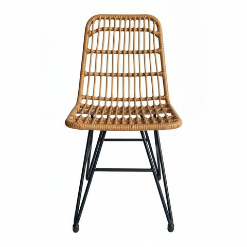 Das Metallgestell sorgt für Stabilität und eine klare Linienführung, während das synthetische Rattan eine angenehme, leicht flexible Sitzfläche bietet. Diese Materialien machen den Stuhl pflegeleicht und komfortabel zugleich. KENS ist für den Innenbereich ebenso geeignet wie für geschützte Außenbereiche; direkte Sonneneinstrahlung sollte allerdings vermieden werden, um die Lebensdauer des Materials zu gewährleisten.